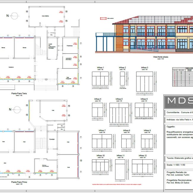 L’intervento riguarda la sostituzione degli infissi interni ed esterni presso l’edificio scolastico del Comune di Buti, finalizzata al miglioramento dell’efficienza energetica dell’involucro edilizio, ai sensi del D.M. 16/02/2016 – Conto Termico 2.0.